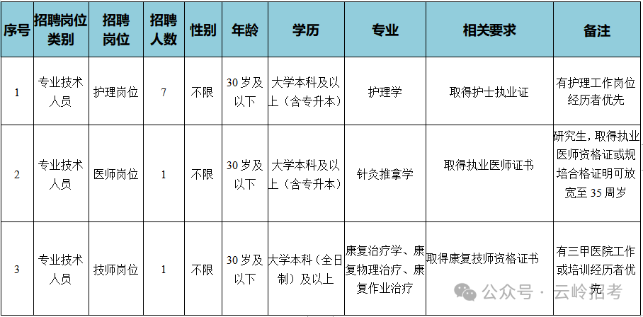 1.護理崗位、醫(yī)師崗位、技師崗位