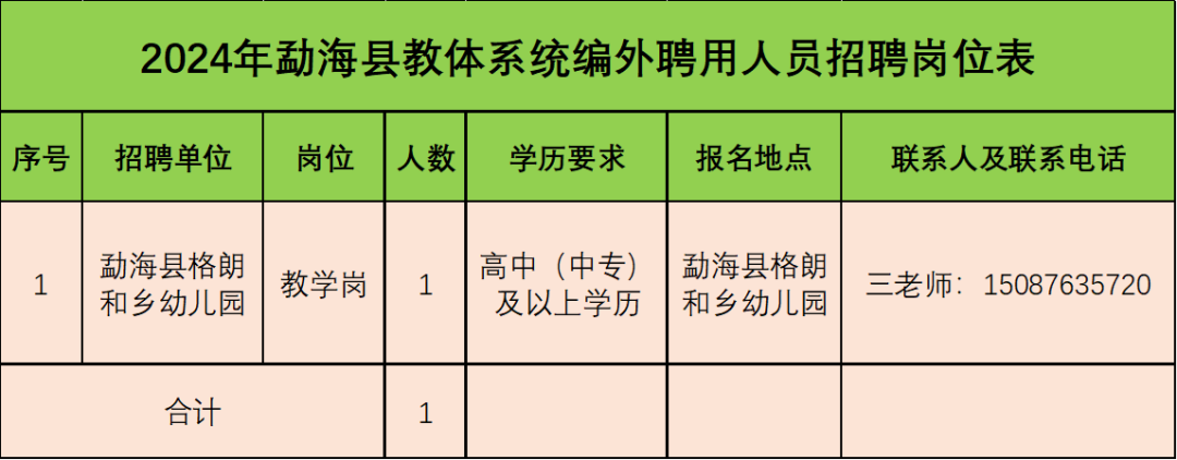 1、2024年勐??h教育系統(tǒng)招聘學前教育教師崗位表